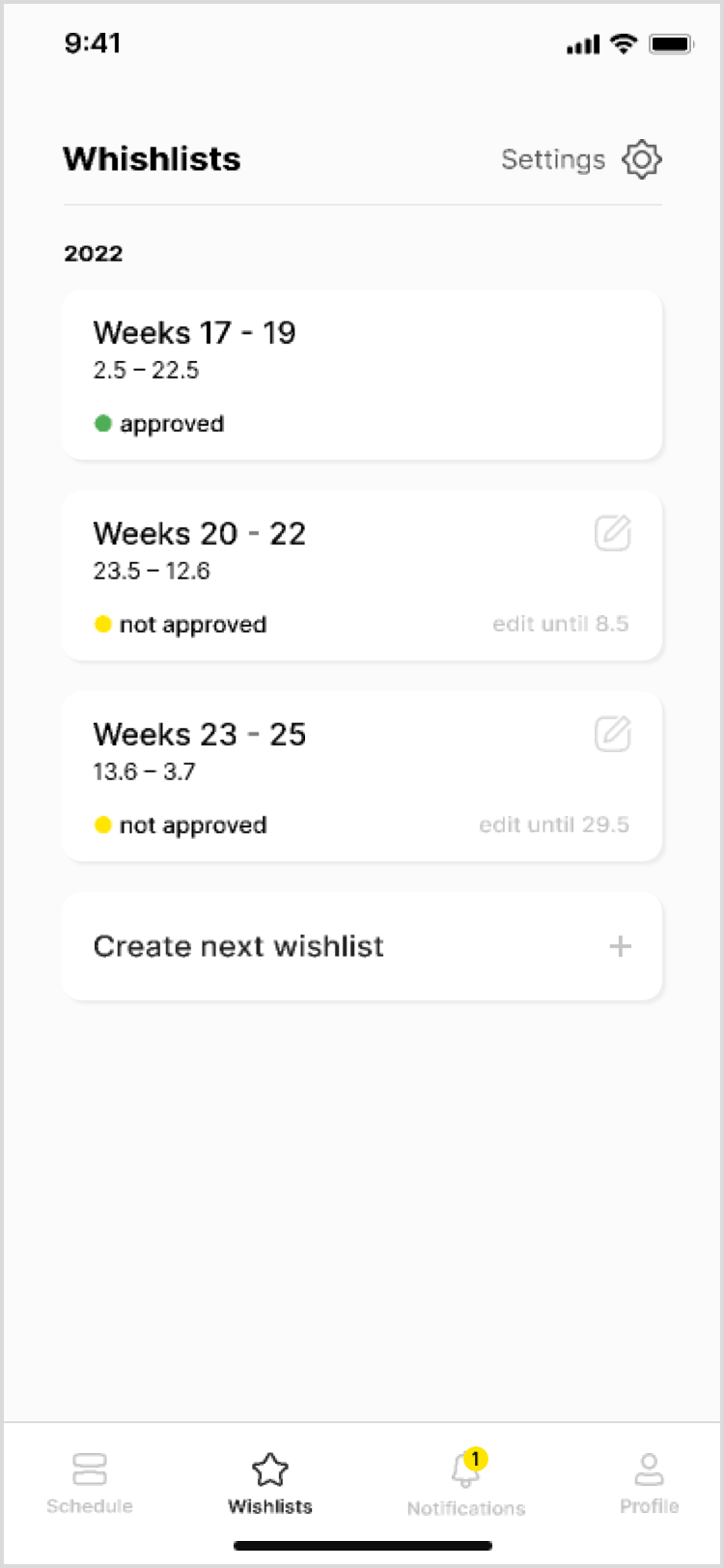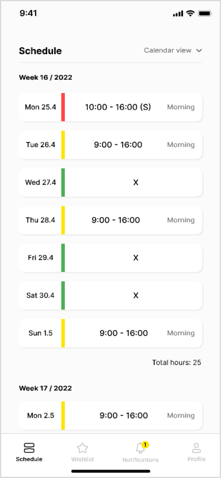 The primary goal was to redesign the schedule for better clarity, ensuring users no longer miss shifts, can easily follow their schedules, and find the wishlist feature intuitive.