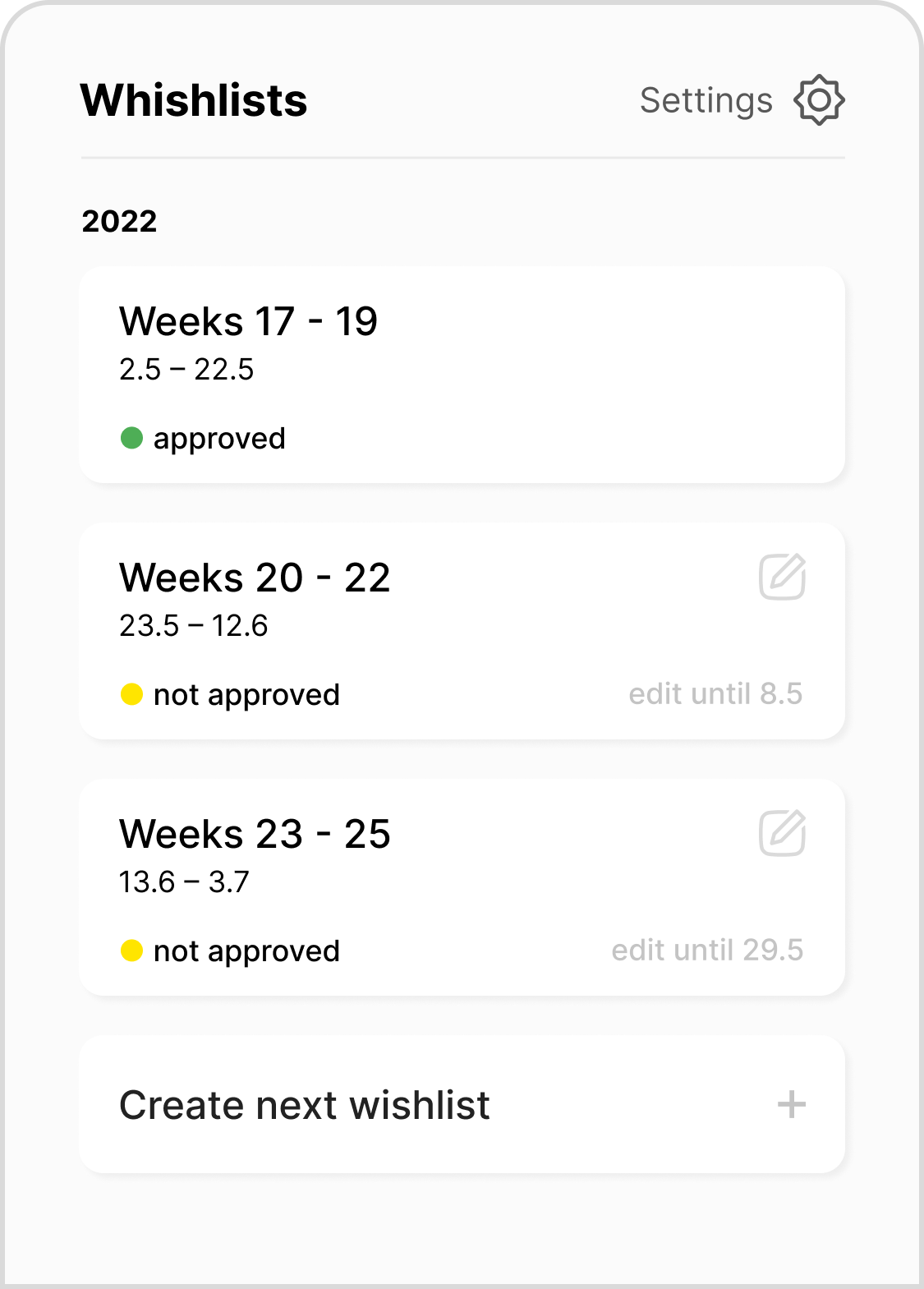 1. Wishlists are filled every three weeks, with a one-week submission window.